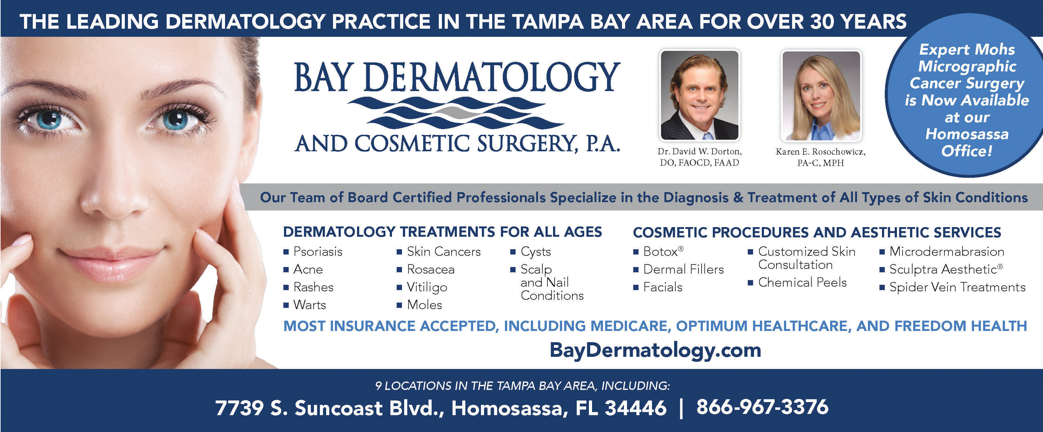 Previously, at Bay Dermatology, I produced both newspaper and digital advertisements, while at Performance Media, I partnered with sales teams to create custom ads that supported and enhanced ad space sales in various publications.