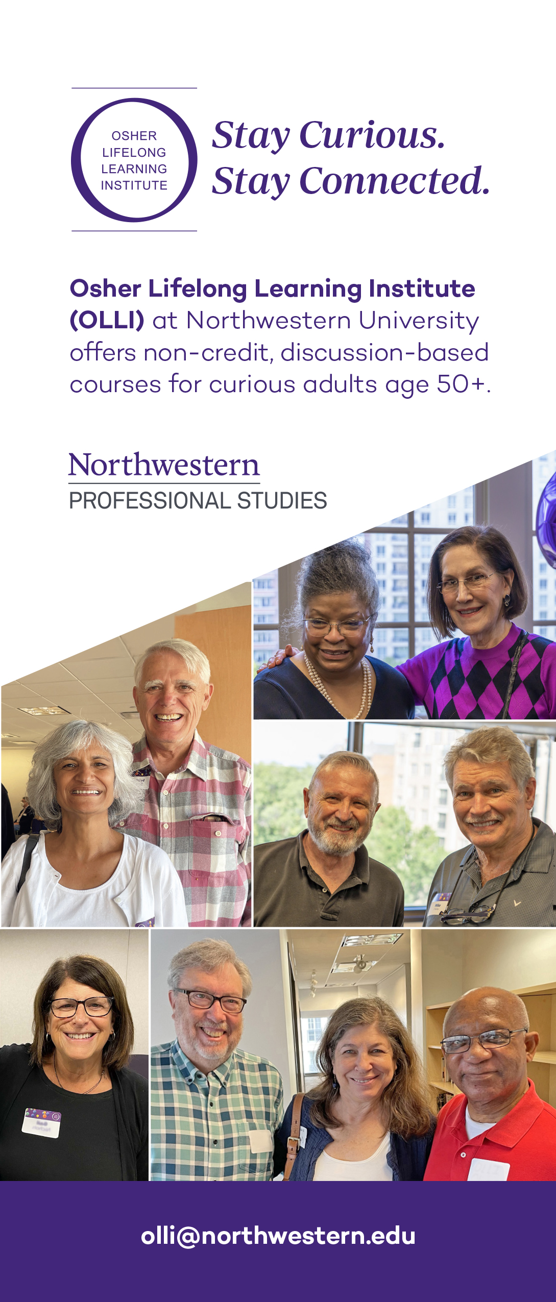 I have developed and executed advertising campaigns for newspapers, catalogs, and magazines, combining design and copywriting to create cohesive, effective messaging. In my current role at OLLI Northwestern, I design and write ads for the alumni magazine and promotional materials for speaker events.